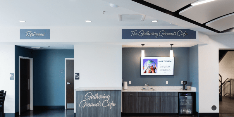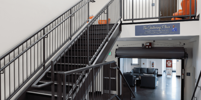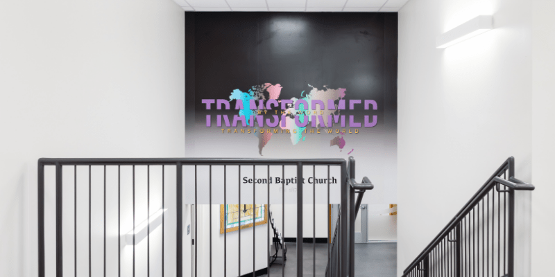 - Use: The new foyer addition includes an inviting gathering space with a fireplace and conference room. Above the new foyer is a new, dedicated youth gathering space. A key factor with this addition was elevator access to the existing sanctuary, the existing basement and the new youth space.